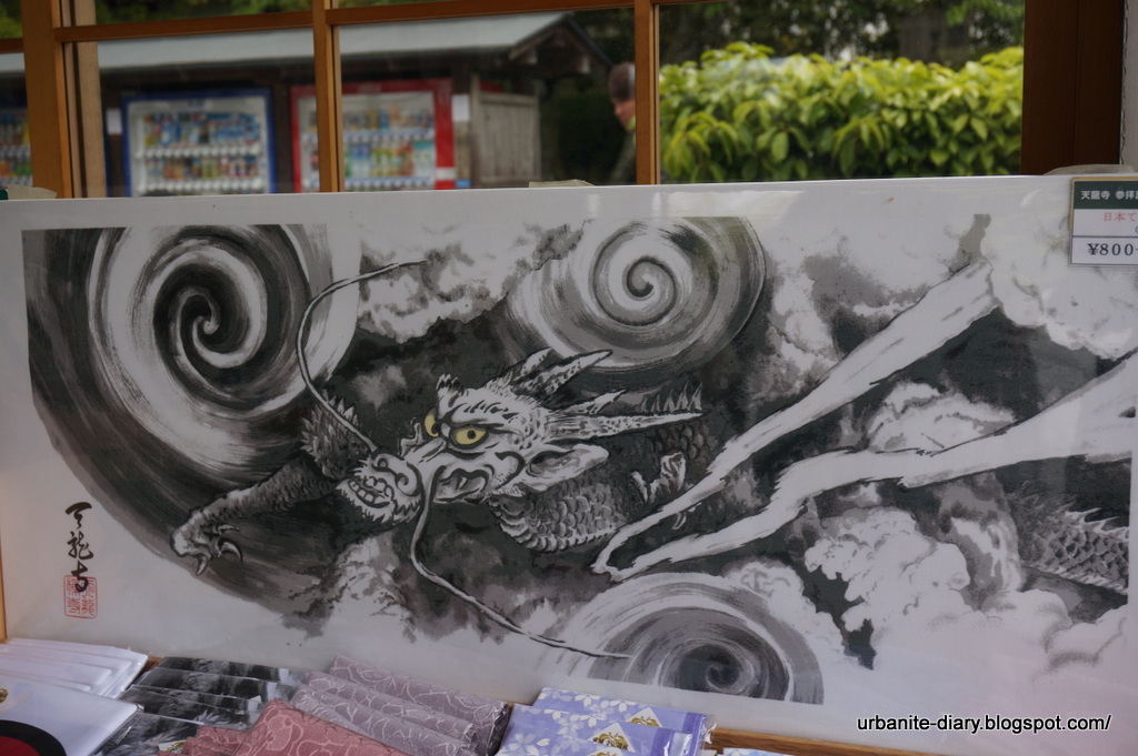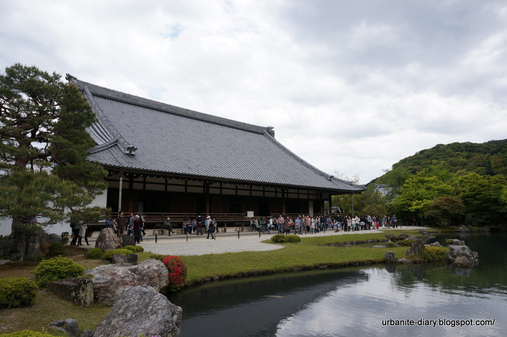 After that we went to the Tenryuji (天龍寺) which cost ¥500 per entrance ticket. This Zen temple is a World Heritage Site founded in 1339. It has a beautiful landscape garden which feature a central pond surrounded by rocks, pine trees and the mountain. Some of the flowers in the Temple were mind-blowing splendid and I was in awe. There was also a dragon in the cloud painting which was also the symbol of the temple. We were pretty exhausted by the time we got into the temple so we just did a quick walk around before we went to hunt for lunch…