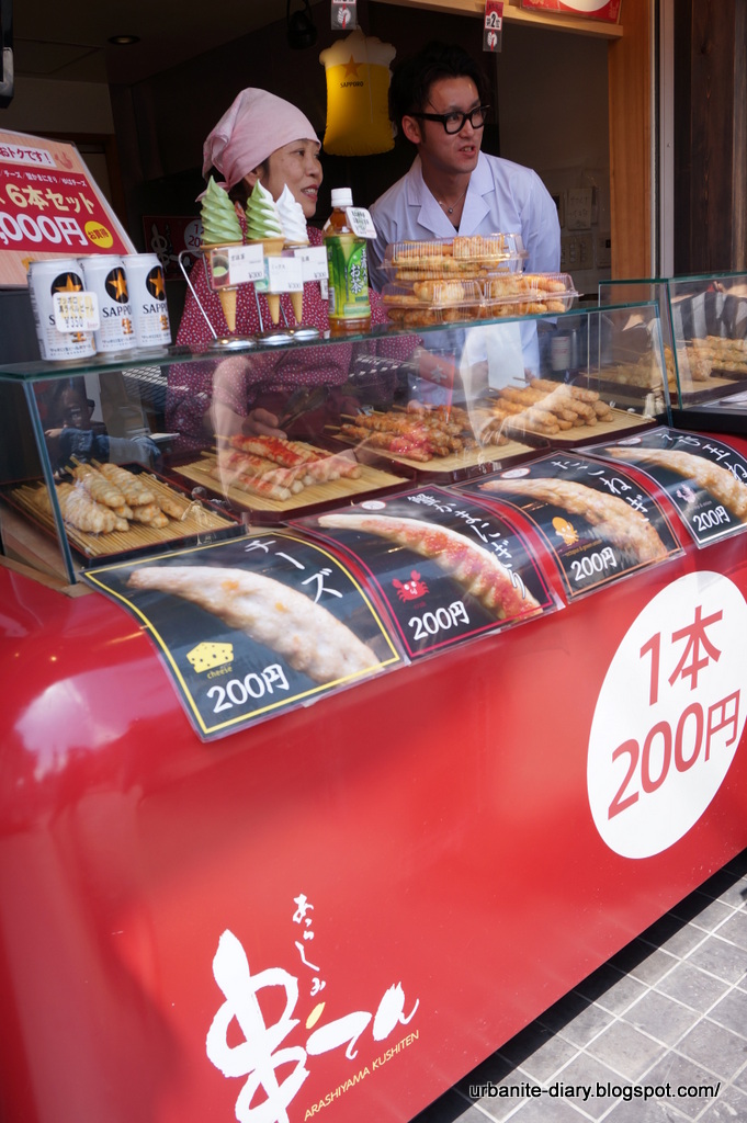 Arashiyama (嵐山) is the scenic mountain area just outskirt of Kyoto city. We took the fastest access from Kyoto Station to Arashiyama is provided by the JR Sagano Line (also known as JR Sanin Line) which cost ¥240 one way 15 minutes ride to Saga-Arashiyama Station. From Saga-Arashiyama Station, central Arashiyama can be reached within 5-10 minute walk. We then walked to the famous Togetsukyo Bridge (literally meant “Moon Crossing Bridge”) which is Arashiyama’s most iconic landmark. It was originally built during the Heian Period (794-1185) and most recently reconstructed in the 1930s. The best time to visit is of course the cherry blossom season in March/April every year but since we were there in May, we didn’t get to see any of the lovely cherry blossoms which usually filled along the river around the bridge.